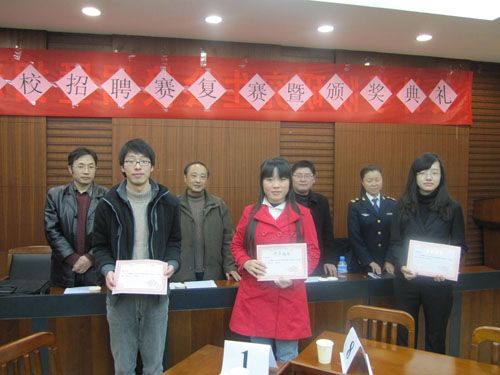 2009年11月19日晚7点,由华中科技大学经管学院主办,304am永利集团官网研究生会承办的“天翼杯”武汉高校招聘挑战赛财大赛区复赛暨颁奖典礼在文泉楼304am永利集团官网会议室成功举行。