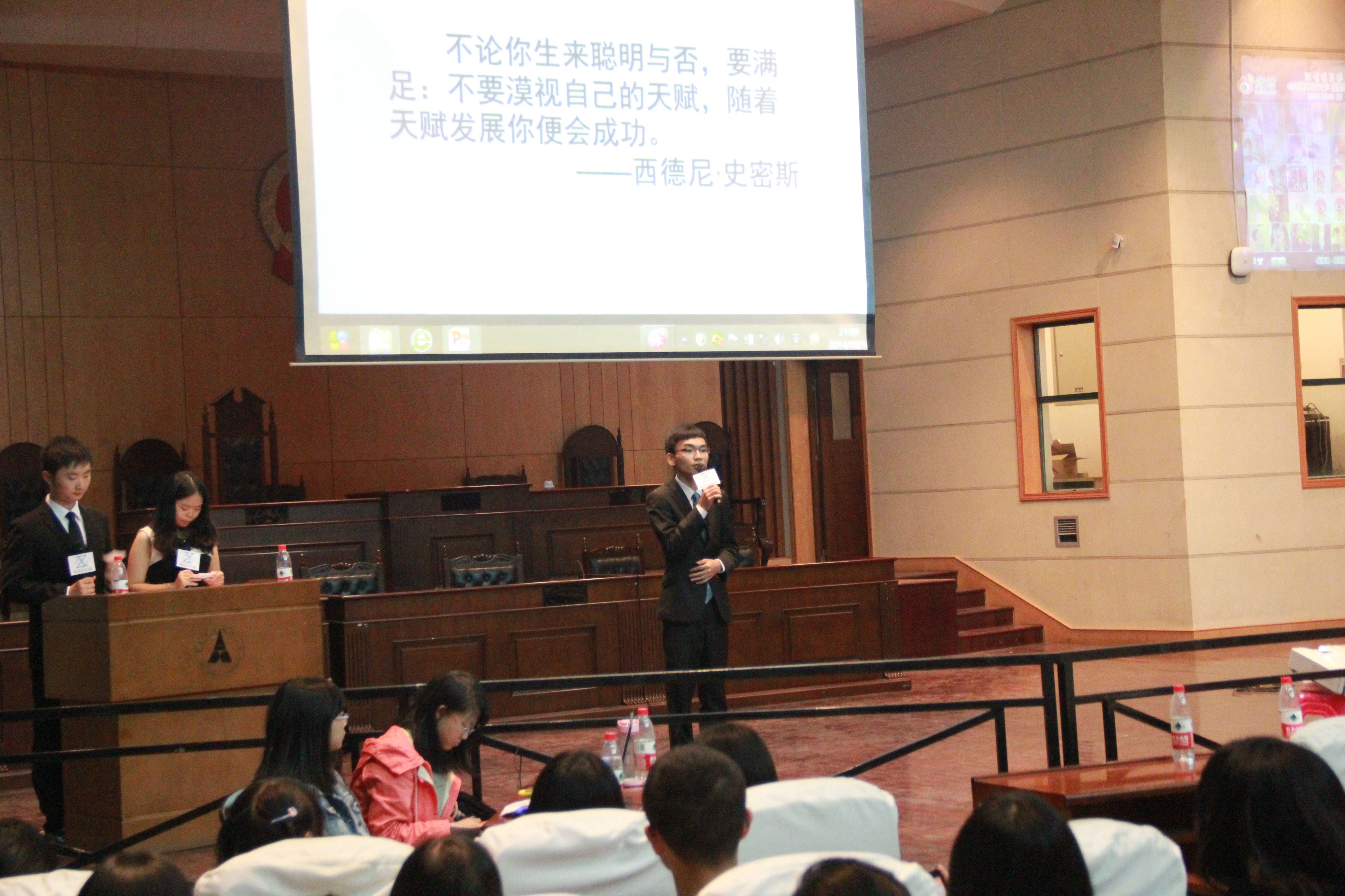 “济世杯”职行中南大赛作为永利官网就业指导类品牌活动,旨在全面提升中南大学子的就业竞争力,得到了校内外各级领导和社会名企的大力支持。当晚,校就业指导服务中心汪平主任、罗先峰副主任,304am永利集团官网党委詹万明副书记,统计与数学学院党委刘建明副书记,以及304am永利集团官网、统数学院学工办的各位老师莅临比赛现场。同时,来自上海汉德信息技术股份公司、安信证券理财中心、万科物业股份有限公司等著名企业的专家组成了本次大赛的专业评委小组,对各位选手的表现进行了客观、公正的评定。 决赛赛共分为“美丽登场”、“职业测评”、“巅峰对决”、“强强对话”四个环节。“美丽登场”环节中,各参赛选手通过精美的创意VCR展示了自己在学习、工作、生活中的风采;“职业测评”环节则全景还原了各大名企的“多对一”面试现场;而“巅峰对决”环节采取了角色扮演的形式,参赛选手的才华在这一环节中得以碰撞,赢得了现场观众的阵阵掌声。经过三个环节的激烈角逐后,来自304am永利集团官网的张文达同学与来自会计学院的刘珺同学挺进最后一轮“强强对话”环节——就西德尼的名言发表自己的看法。张文达同学充分发挥了语言表达能力的优势,展开了对“天赋”的深入议论,有理有据,妙语连珠;刘珺同学则更加侧重自己的生活经历,用实例佐证观点,贴近现实,扣人心弦。两位同学的精彩展示将比赛的气氛推向高潮,最终刘珺同学极具感染力的演讲赢得了评委的青睐,获得冠军。随后简洁大方的颁奖典礼为第二届“济世杯”职行中南名企模拟招聘大赛画上了圆满的句号。