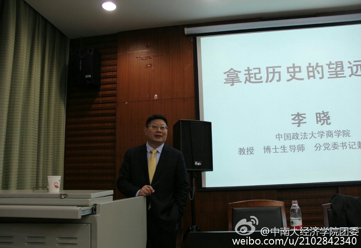 晚上七时许,讲座正式开始。李晓教授以北京52所大学各专业毕业生月薪排名为例,展示了经济学专业的就业优势。引用习近平总书记的话“端起历史规律的望远镜去细心观望”,引出今晚的话题—经济史对商业发展的重要性。李晓教授非常认同股神沃伦·巴菲特的观点,认为投资者必须记住历史;他以《基业长青》中对历史经验的深刻总结为例,生动的阐述了理论经验指导对经济发展的良好促进作用,博得了同学们的阵阵掌声。为了更为深入地论证自己的理论,李晓教授将历史名人范蠡和亚洲首富李嘉诚的经商理念作对比。李晓教授分析出了两者的共同点:其一是同属“廉贾”,即“贪贾三之廉贾五之”,所以两者均积累了大量财富;其二是“不去赚最后一个铜板”,即通过严格控制利润指标的手段来降低投资风险。由此教授得出结论:李嘉诚因合理运用历史经验促进了企业的发展。李晓教授又通过分析中国改革开放以来的经济走势图来深入诠释自己的观点。同学们被教授幽默风趣而又富有哲理性的话语深深吸引。最后,教授以“商祖”白圭对陈嘉庚的影响这一例子来收尾,告诫同学们要学会分析历史,展望未来。讲座在热烈的掌声中圆满结束。