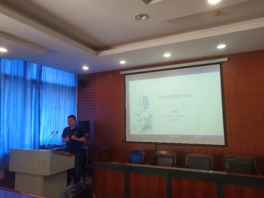 杨晓军老师同样强调了项目选题的重要性,认为新颖且重要的选题是申报成功的核心前提,项目论证和研究基础是申报成功的重要保障。随后,他结合自身申报过程,认为在项目申请书初稿完成后,应当积极主动请教业界及领域专家,对申请书可能存在的问题反复修改完善,并期望各位申报老师能够“虚心求教,反复打磨”,力求对申报书做到“精益求精”。